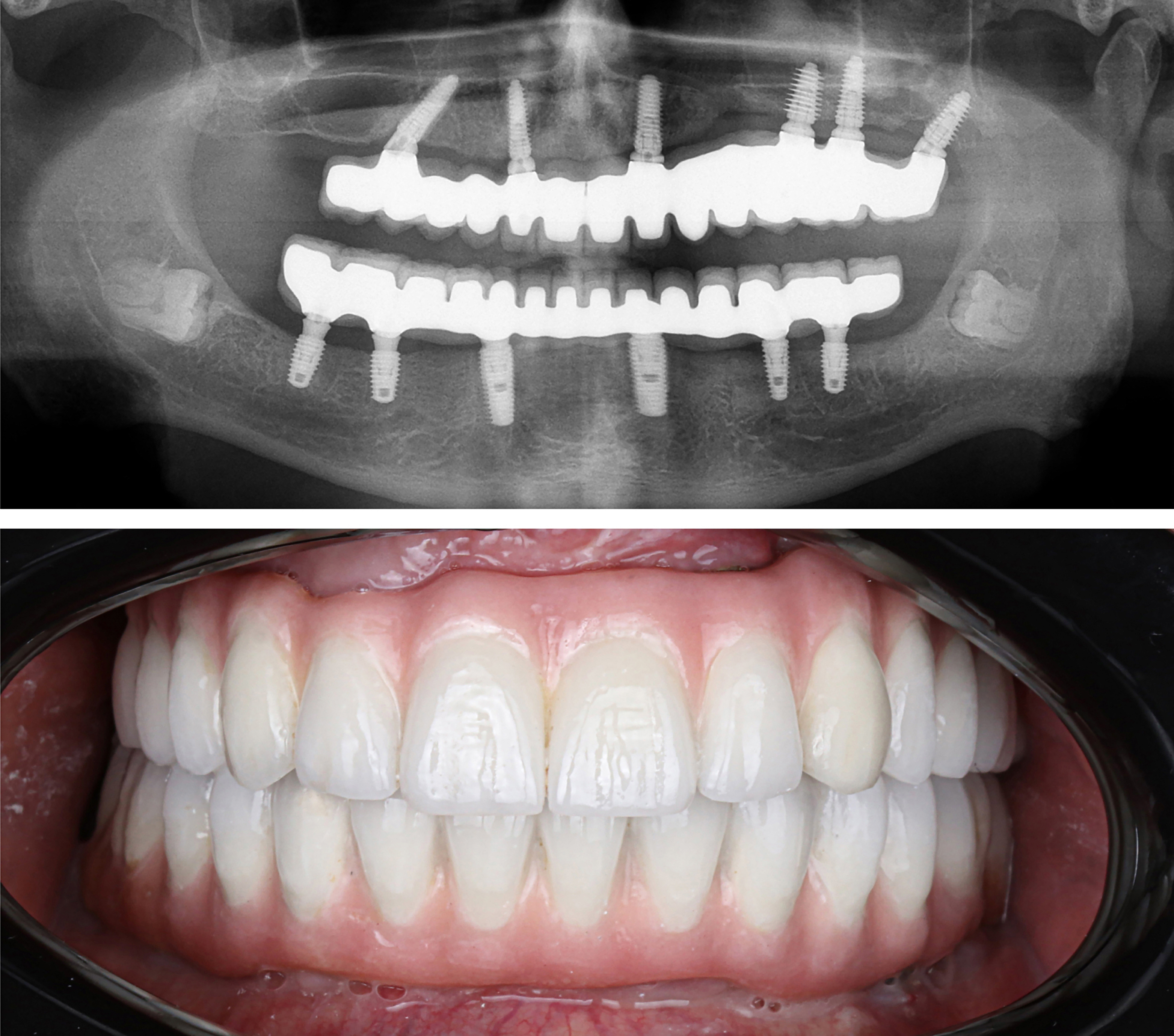 options to replace your smile - regular dentures or full arch dental implants. Many people mistakenly choose plastic dentures at first without thinking about the long term consequences. The truth is that regular dentures accelerate jaw bone loss, cause facial sagging, and make it difficult to eat food comfortably. Full arch dental implants fix all of these problems and offer a high quality of life for the long run. Dental implants can easily last 40+ years without the need for replacement.